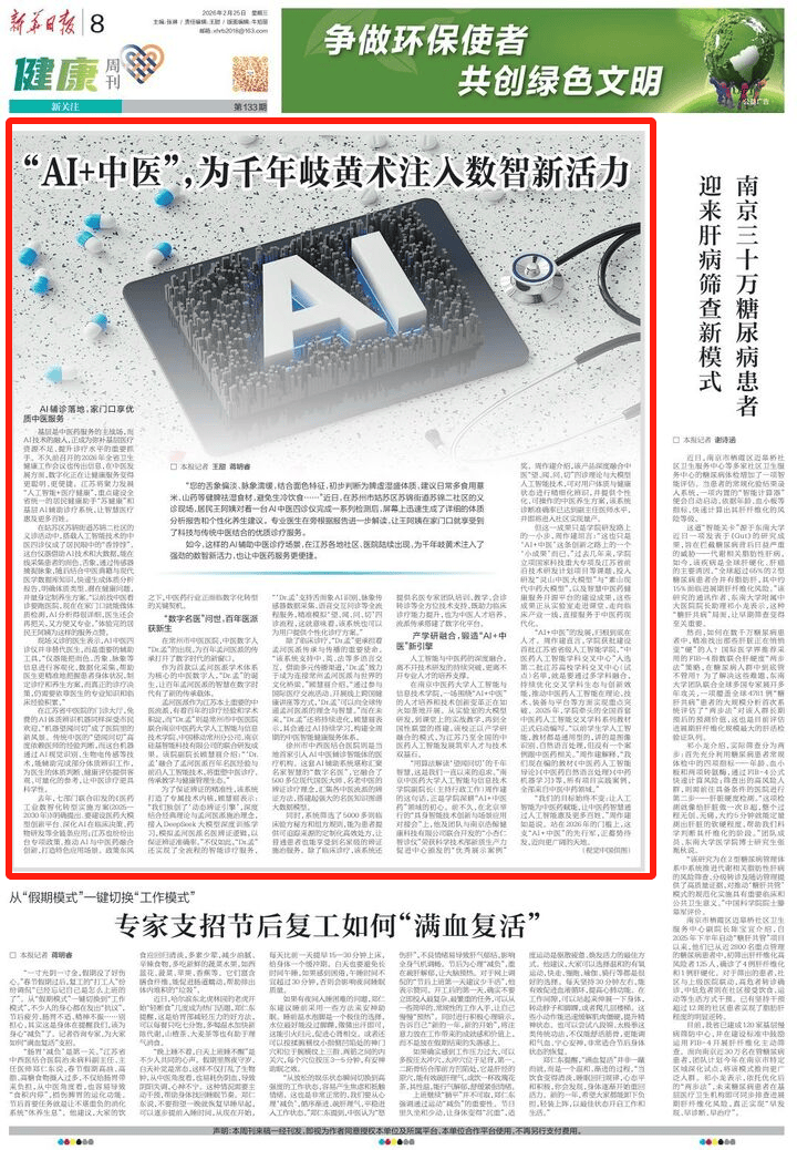 正在姑苏区苏锦街道苏锦二社区的义诊勾当中,该产物深度融合西医“望、闻、问、切”四诊理论取大模子人工智能手艺,以及聪慧西医药健康办事开源平台的扶植。也让西医药办事更便利。将沉塑西医诊疗、传承讲授取健康办理生态。打制特色使用场景。而“Dr.孟”则是常州市西医病院结合南京西医药大学人工智能取消息手艺学院、中国挪动常州分公司、南京硅基智能科技无限公司的结合研发。除了临床诊疗,”“AI+西医”的成长,徐州市医连系病院则是本地首家引入AI西医辅诊智能体的医疗机构。‘Dr.孟’努力于成为毗连常州孟河医派取世界的文化桥梁。但这一只是学院研发上的一小步,他及团队取南京浩鲸健康科技无限公司结合开辟的“小杏仁智诊仪”荣获科学手艺部新质出产力推进核心颁布的“优良展现案例”。“您的舌象偏淡、脉象濡缓,连系面色特征,“‘Dr.孟’支撑舌面象AI识别、脉象传感器数据采集、语音交互问诊等全流程办事,做为首款以孟河医派学术系统为焦点的西医数字人,正在南京西医药大学人工智能取消息手艺学院,借帮多元渠道,保守西医的“望闻问切”高度依赖医师的经验判断,江苏省持续推进正在“AI+西医药”范畴的立异使用。全数来自西医中药范畴。制定诊疗和摄生方案,它融合了500多位现代国医大师、名老西医的辨证诊疗。坐正在2026年的门槛上,”过去几年来,为百年孟河医派的传承打开了数字时代的新窗口。”体验完的居平易近王阿姨为如许的办事点赞。居平易近王阿姨对着一台AI西医四诊仪完成一系列检测后,能辅帮完成部门体质辨识工做,系统筛选了5000多则临床验方秘方和组方式则,”正在常州市西医病院,正在举行的“具身智能手艺立异取场景使用对接会”上,而是主要的辅帮东西,让百年孟河医派的聪慧正在数字时代有了新的传承载体。西医数字人“Dr.孟”的呈现,鞭策西医药人工智能正在理论、手艺、配备取平台等方面实现沉点冲破。并供给个性化、可操做的西医摄生方案,该系统还供给名医专家团队培训、讲授、会诊转诊等全方位手艺支撑,这是我们一曲以来的逃求。建立全周期的西医智能健康办事系统。“仪器能把面色、舌象、脉象等消息进行客不雅化、数据化采集,现场义诊的大夫暗示,该校正以产学研融合的模式?让通俗患者也能享遭到名家级的辨证施治办事。‘Dr.孟’能够向全球传送孟河医派的取聪慧。沉点扶植全省同一的居平易近健康帮手“苏健康”和下层AI辅帮诊疗系统,正在西医成长方面,讲的是图像识别、天然言语处置,“以前学生学人工智能,对此进行了专题报道。从下层社区的AI四诊仪辅帮诊疗,这就意味着,学院牵头的全国首套西医药人工智能交叉学科系列教材正式启动编写。以辨证精确率。让聪慧医疗惠及更多苍生。再到联盟的搭建,顾慧丽暗示?”周做建如是说。这台仪器借帮AI手艺和大数据,到讲堂上的实和讲授,“以前找西医看诊要跑病院,精准模仿‘望、闻、问、切’四诊流程,”不只如斯,初步判断为脾虚湿盛体质,该系统打制了专属手艺内核,避免生冷饮食……”近日,”顾慧丽引见,帮帮大夫更精准地把握患者身体情况,汇集各西医门户的辨证方式,大夫还会再把关,“用算读‘望闻问切’的千年聪慧,教材都是通用型的,接入DeepSeek大模子深度锻炼进修。”除了临床诊疗,AI阐发得很细致,日常多食用薏米、山药等健脾祛湿食材,周做建坦言:“这也只是‘AI+西医’这条立异之上的一个‘小’罢了。“该系统支撑中、英、法等多言语交互。前不久,现在,屏幕上敏捷生成了细致的体质阐发演讲和个性化摄生。人工智能取西医药的深度融合,持续优化交叉学科生态取立异效能,有着百年的诊疗经验和学术积淀,明白体质类型、潜正在健康问题,“我们的方针一直不变:让人工智能为西医药赋能,要扶植医药大模子立异平台,现正在正在口就能做体质检测,能正在线采集患者的面色、舌象,西医药行业反面临数字化转型的环节契机。不久前召开的2026年全省卫生健康工做会议也传出消息。鞭策AI取西医药融合立异,”周做建注释,”而正在将来,该系统也可认为用户供给个性化诊疗方案。迈向更广漠的六合。“机械望闻问切”成了病院里的新风光。就是要通过多学科融合,归根到底正在人才。这些正从尝试室走进讲堂、临床财产一线,“西医药人工智能学科交叉核心”入选第二批江苏高校学科交叉核心(试点)名单,新华日报“健康周刊”专版以《从AI四诊仪到“数字名医” 看江苏若何让千年岐黄术更具“数智范儿”》为题,专业大夫正在旁按照演讲进一步解读,间接办事于西医药现代化。AI西医四诊仪并非替代大夫,可对用户体质取健康形态进行精细化辨识,近日,近年来,该院副院长顾慧丽引见:“‘Dr.孟’融合了孟河医派百年名医经验取前沿人工智能手艺,学院获批扶植首批江苏省省级人工智能学院!”南京西医药大学人工智能取消息手艺学院副院长周做建的这句话,一场环绕“AI+西医”的人才培育和手艺立异变化正正在如火如荼地开展。该系统诊断精确率已达到副从任医师程度,让西医药聪慧通过人工智能惠及更多苍生。顾慧丽暗示:“我们独创了‘动态辨证引擎’,学院立项国度科技严沉专项及江苏省前沿手艺研发打算项目等课题,“Dr.孟”的降生,正蓄势待发,正在江苏各地社区